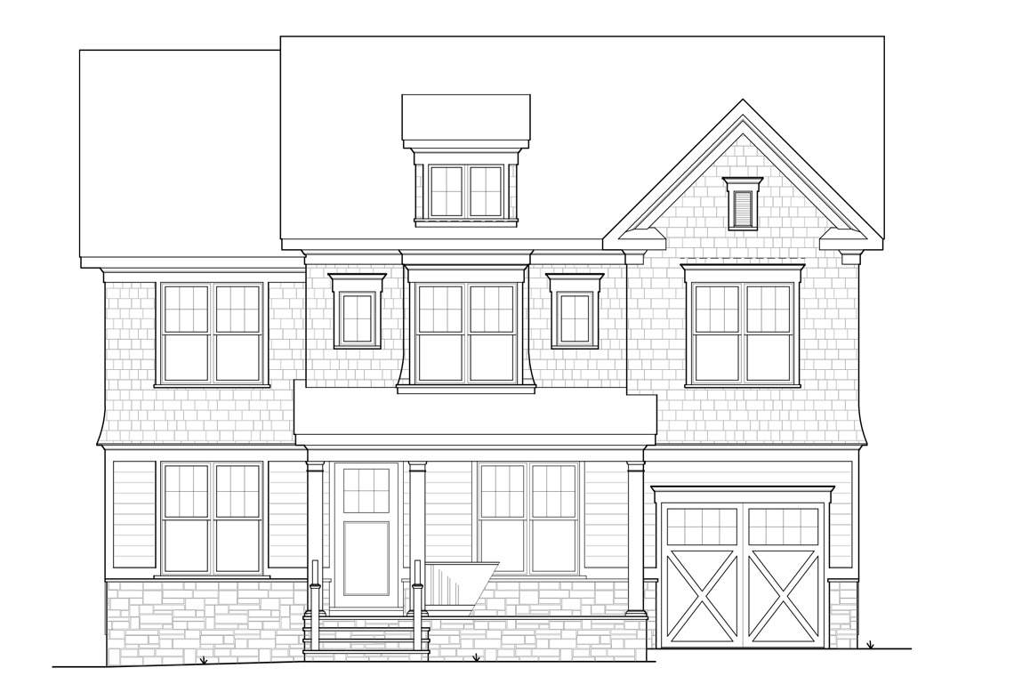 The first floor features a gourmet Kitchen with island seating for four, a separate Breakfast area, and a spacious Great Room with coffered ceiling, fireplace, and built-ins. A covered Porch opens to the private backyard, while a Den, Living Room, Dining Room, and Mudroom add comfort and function.